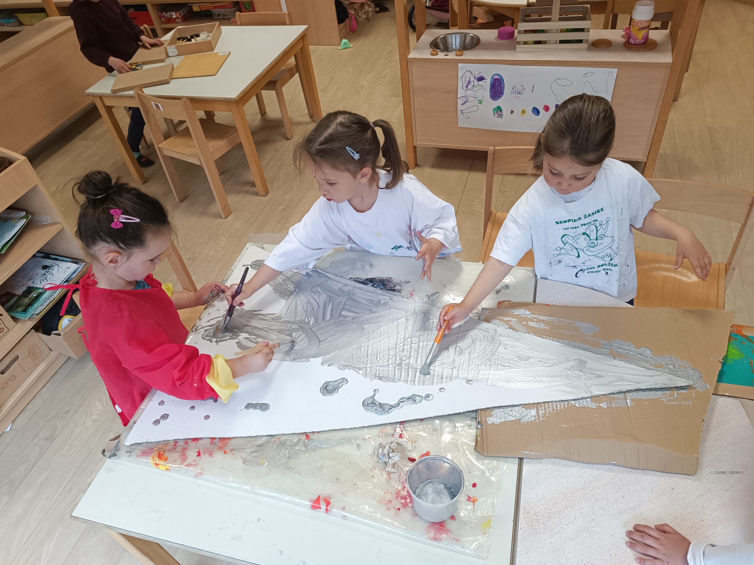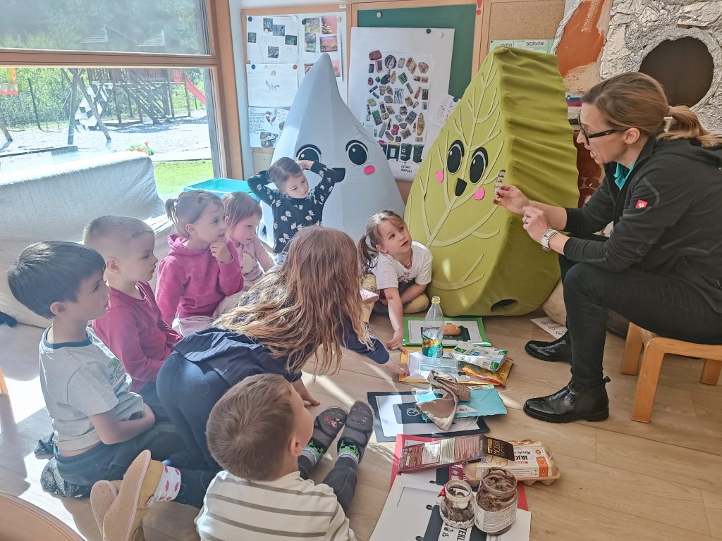 Za sprostitev smo si ogledali risanki Kapljica in listek, ki na otrokom prijazen način prikazujeta naravne procese in pomen varovanja narave. Teden pa smo zaključili s prav posebnim dogodkom – obiskali so nas gostje iz Čistilne naprave Grosuplje, ki so otrokom predstavili svoje delo ter pomen čiščenja vode za naše okolje.